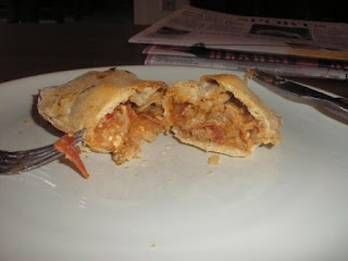 Chop artichokes, and combine with chicken, onion, garlic, and both cheeses. Mix well.